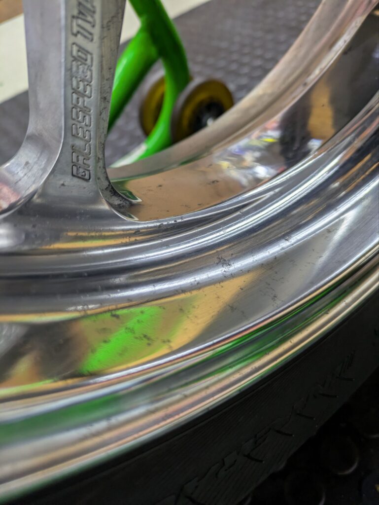 先日入庫のニンジャの白くなったポリッシュホイールを磨きます✨