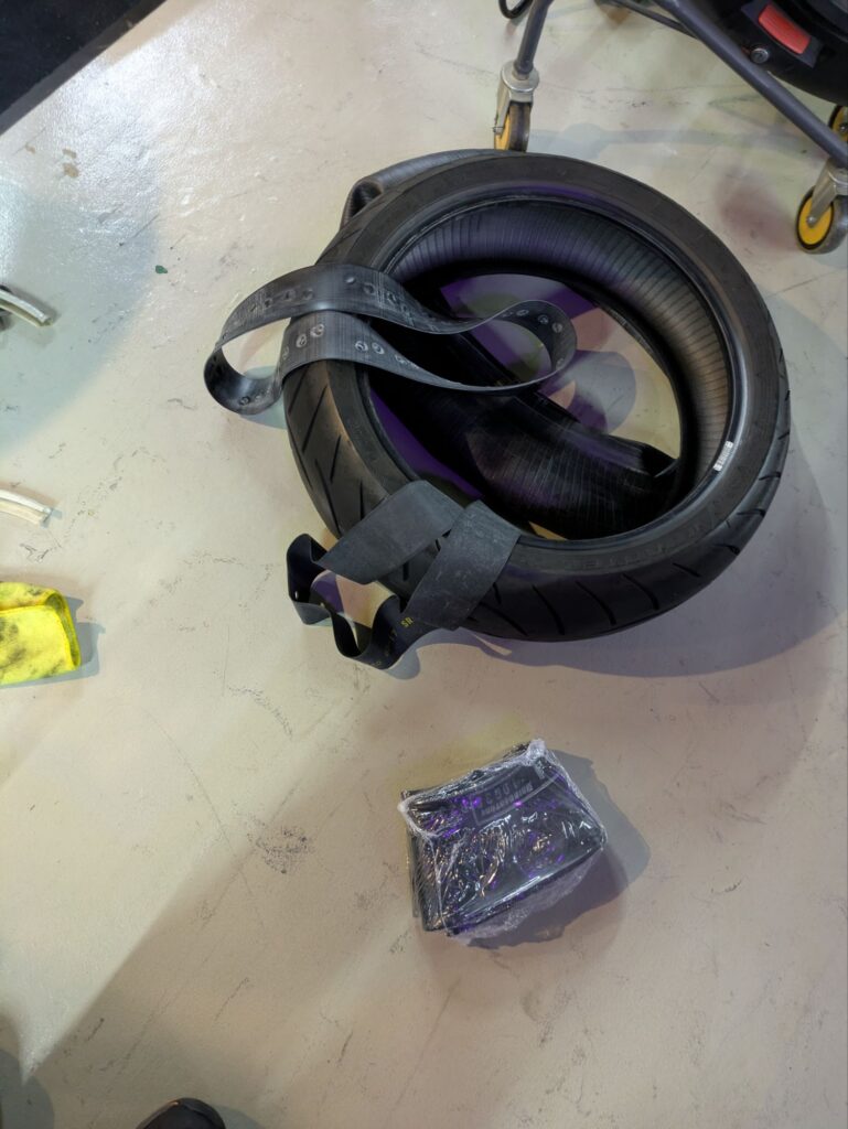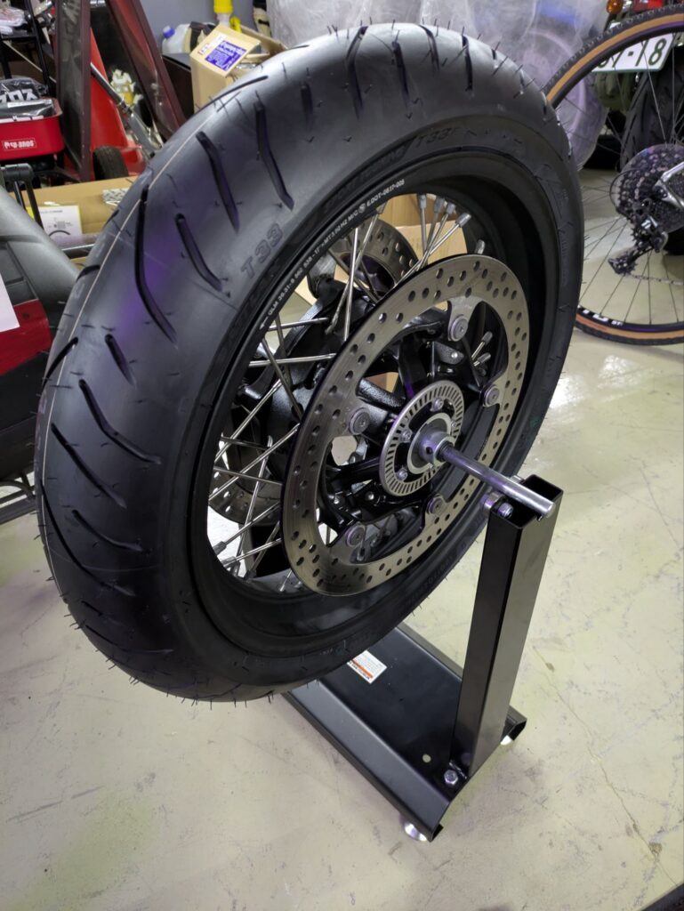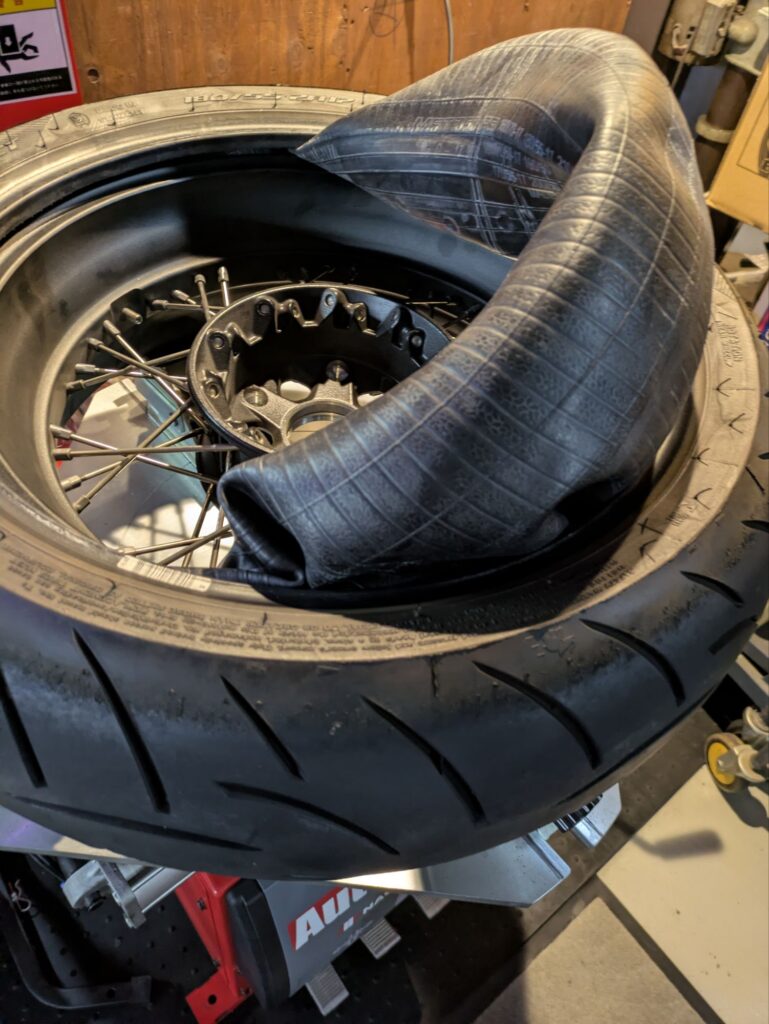 履いてたタイヤがメッツラーZ8M 良いタイヤですが硬めです😖チェンジャーとレバーを使い ヒーヒー言いながら作業🔧