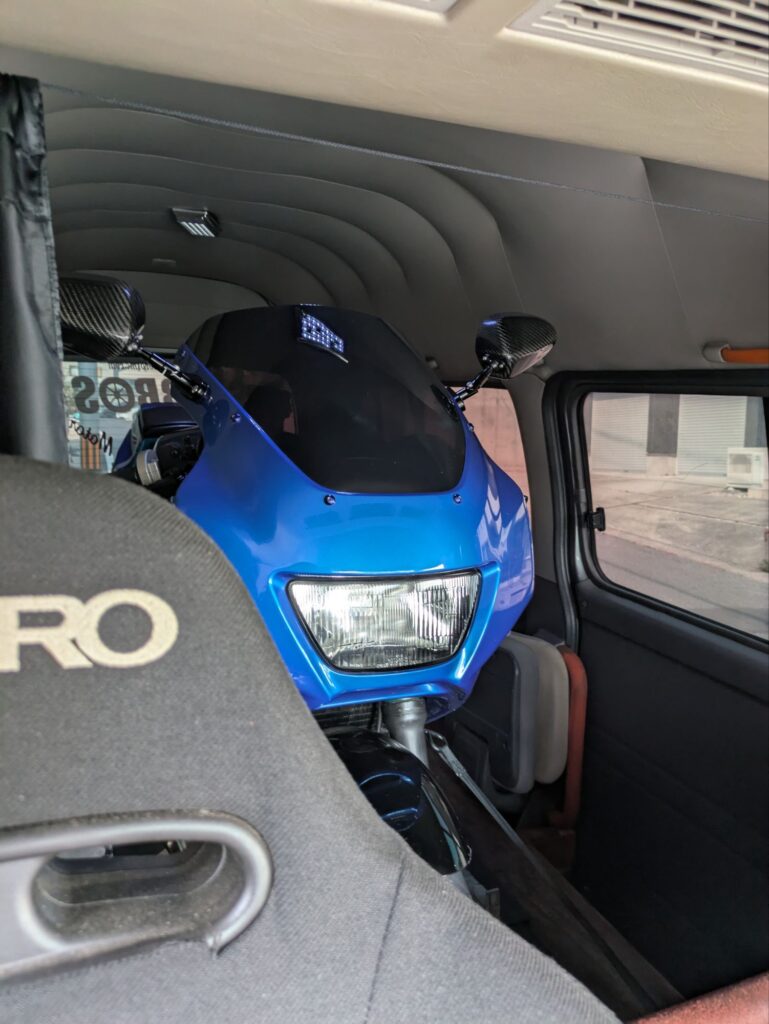 自宅から嫁号を積んで来てたので 降ろして✨    車検でございます😊 今年は うちの車&バイク 全部 車検なのです😖嫁にバイク替えないの?と聞くと 気に入ってるし お金無いから TRXのまま  おそらく外食と 要らんバイク処分すれば もう少し生活も楽になるかもしれませんね😖