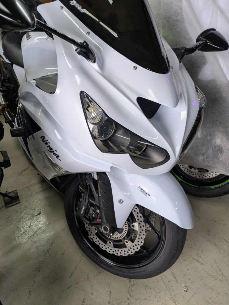 S様のニンジャ入庫✨  病気発覚で しばらく入院になるので秋まで預かりです 乗れるようになったら車検継続しましょう😀そんな年頃です😖