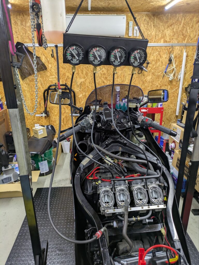 ジャンプスタートさせて同調調整してたら ストンと止まり 作業中断(T_T)明日 新しいバッテリーが届く予定なので 続きは明日😖